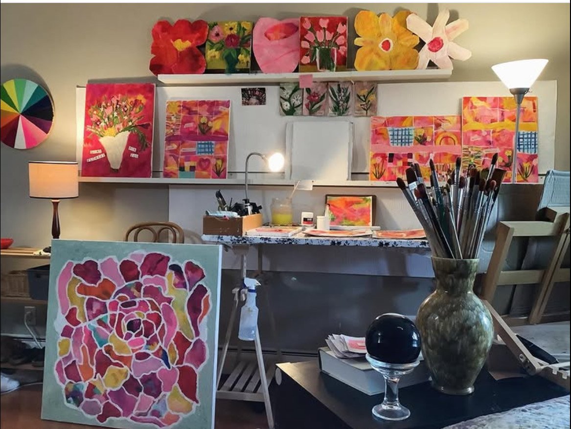 Wow, 2023 was a wild year for me. We sold our house of 20 years and moved into a 900-square-foot apartment in Stillwater, MN. On top of that, my C-PTSD was so bad I just kept walking out of jobs. I'd literally be at the door and just keep on going. After the third time, Mick finally said, 'Why don't you just take a break from working for a while?' I wasn't sure about it. I mean, I'd always had a job I hated, and somehow, that's what made me happy to come home. I decided to give it a go. It might sound like a dream, but it wasn't easy. Painting flowers made me happy, so I did that for three hours every day. To pay for my art supplies, I filled out online surveys. The day I got my first big box of art supplies was amazing. As my painting improved, so did my life. My C-PTSD symptoms lessened, and I could finally sleep and breathe again. I processed a million different thoughts while I painted. I decided to keep painting and learning, and our new apartment became an art studio!