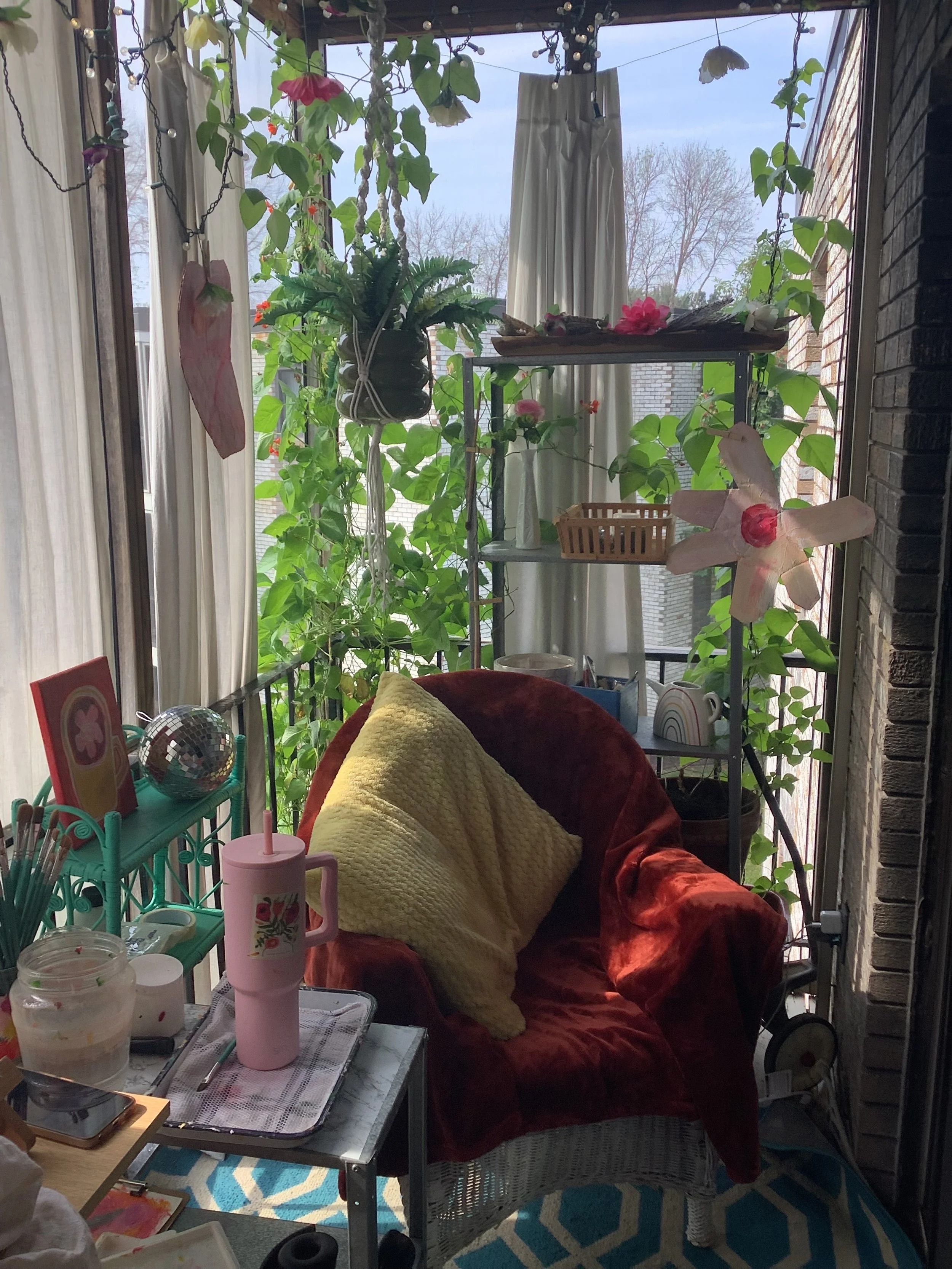 Grieving for Iggy, I was desperate for a change of scenery. I set up my balcony into a temporary studio and painted there for two weeks.