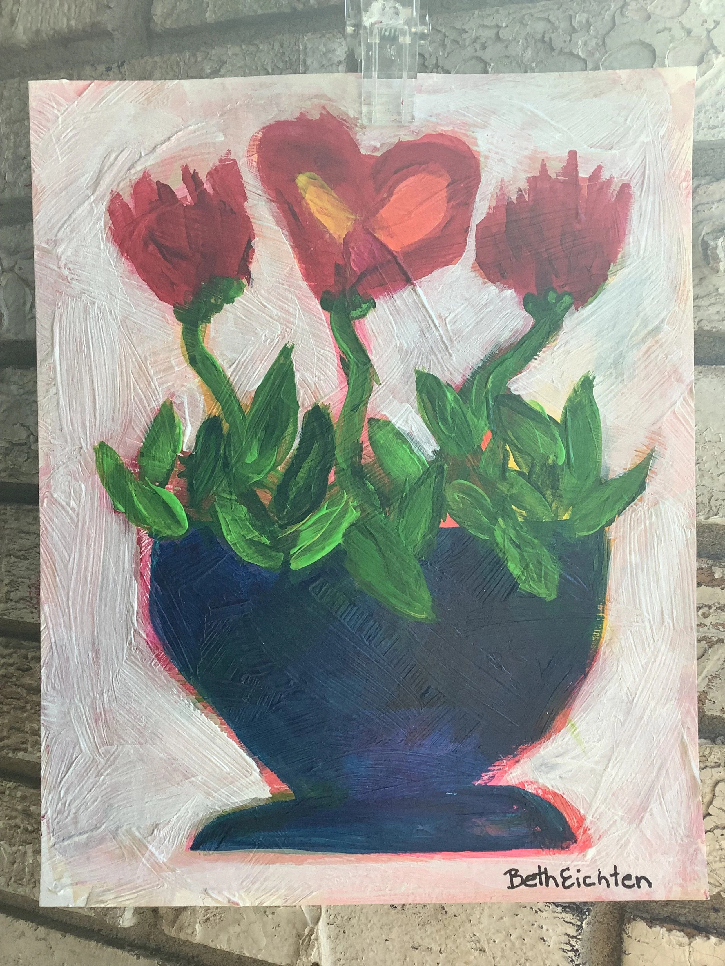 From Beth R. Hello Beth. I just wanted to share with you that I think you often. You are very talented and brave. I appreciate and love your art talent. I also think of the information you have shared about your struggles with depression and anxiety. Stay strong and thank you for your honesty. Hugs to you.